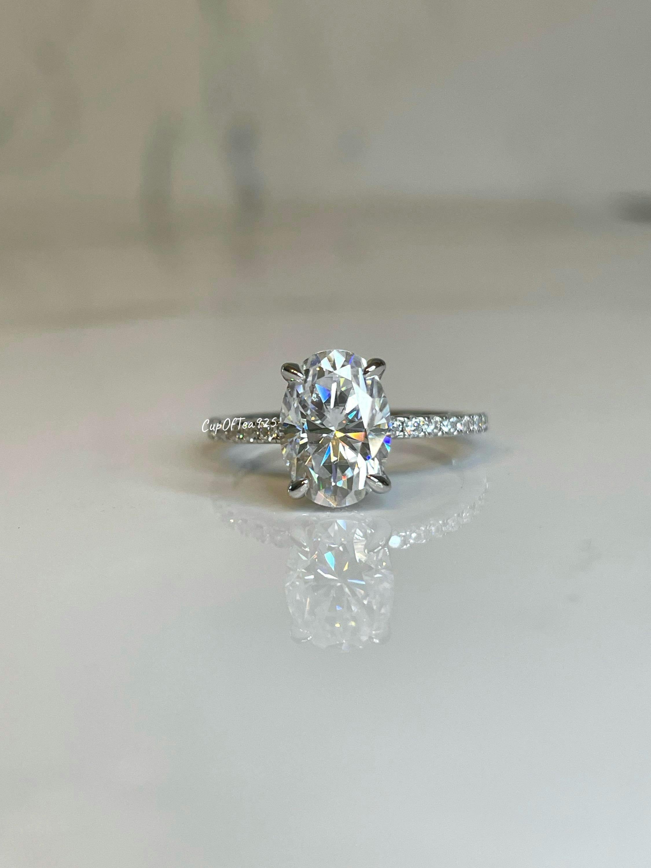 2.5CT Oval Moissanite Engagement Ring: Sterling Silver Hidden Halo