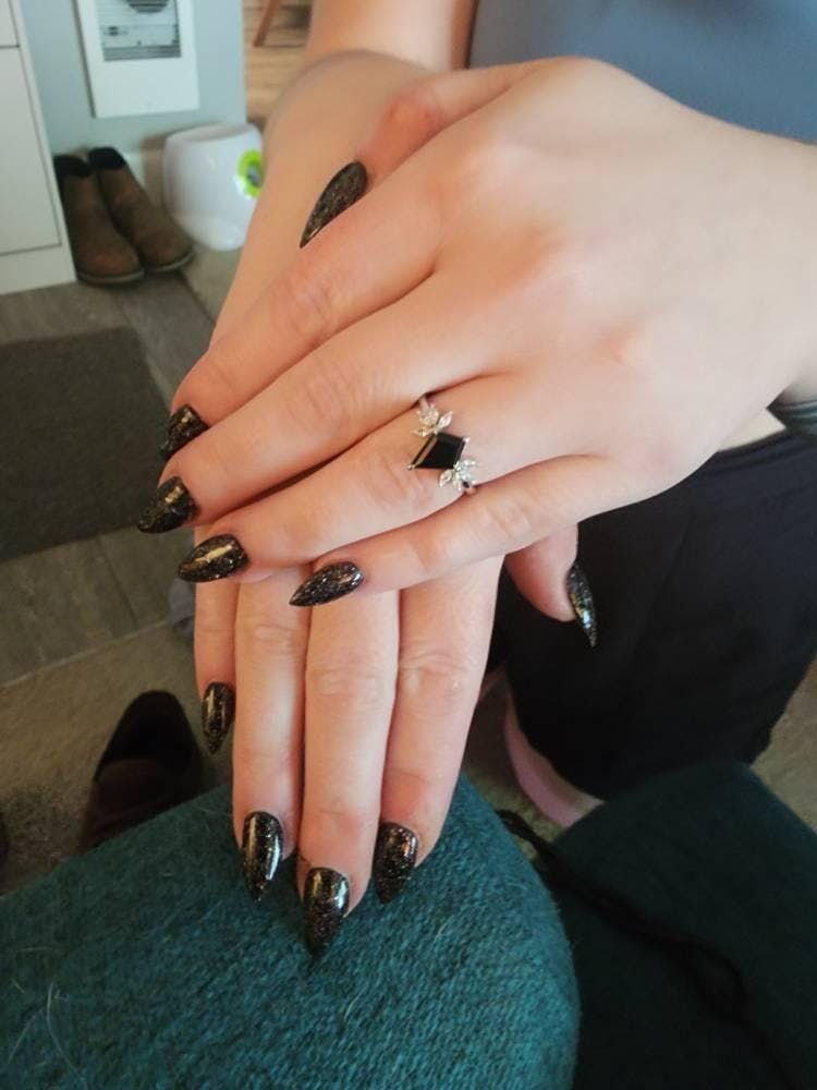 Black Onyx Ring, Sterling Silver 925 kite shaped black onyx engagement ring