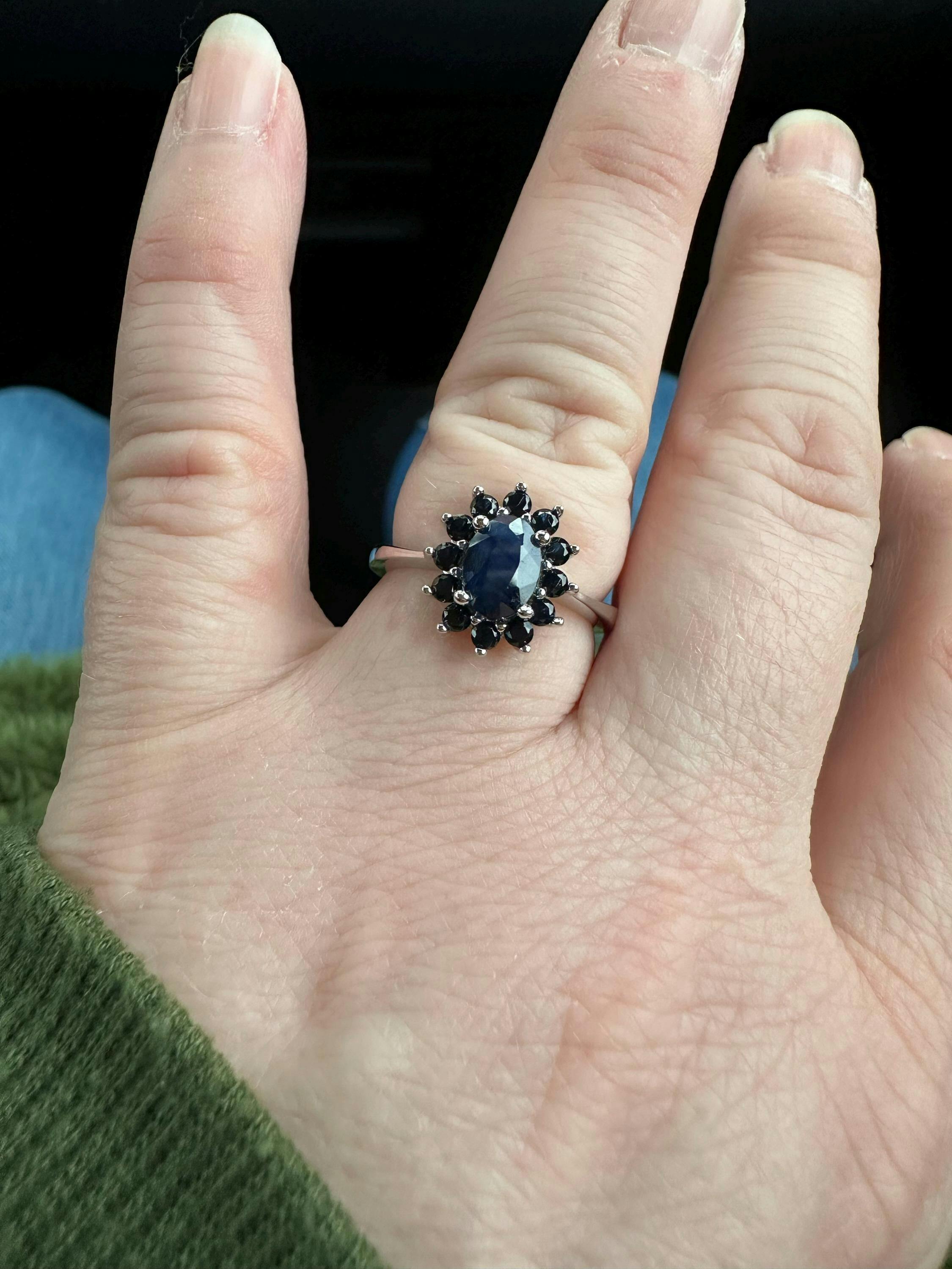 Blue Sapphire ring. Sterling Silver 925 Ring with 0.94CT Natural Diffused Blue Sapphire, promise ring, gift for her