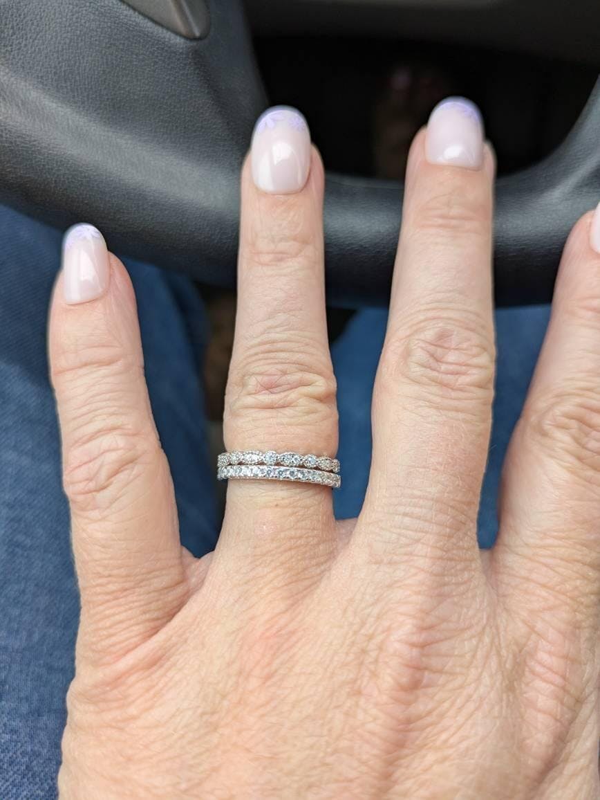 *Set of 2: Sterling Silver 925 Art Deco band and half eternity band with finest D color VVS Moissanite.